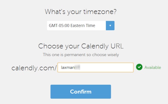 You have to sign up with any of your Google account to use Calendly. Allow access to this service with your Google account. Then after, select time zone, and a URL for your Calendly account. This URL will be unique and permanent for your Calendly account which you can share with others to view events.