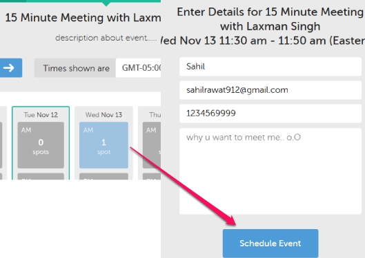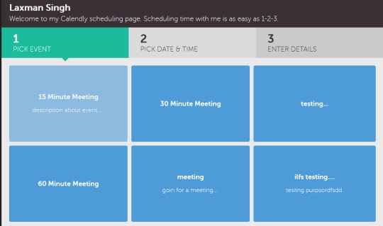 From the event types list, a person can select any type and can check whether you are available for a particular date & time or not. If a spot is found for a particular day, then that person can view timings to fix appointment for that day with you.