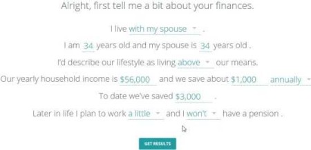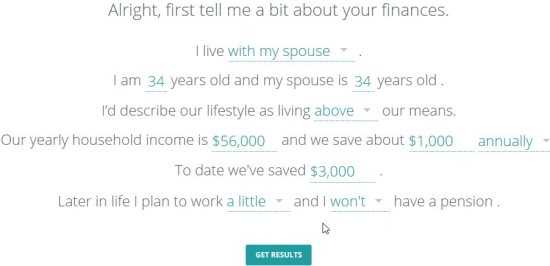 When you land on this website, you are introduced to Kate who is your guide through this tool. You will be required to enter a few details about yourself, your income and savings, if you will be getting a pension after retirement, etc. Once filled out click on the get results button at the bottom.