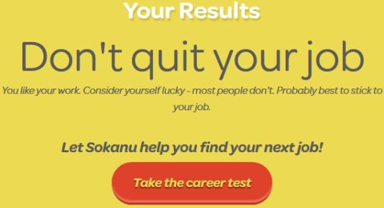 Once done with the 25 questions, you will be shown the result whether you should quit your job or not. My quiz result is shown in the screenshot below.