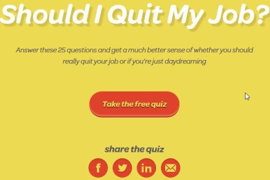 So let’s talk about this quiz I came across called “should I quit my job“. The quiz gives you 25 multiple choice questions to answer and at the end it tells you whether you should quit your job.