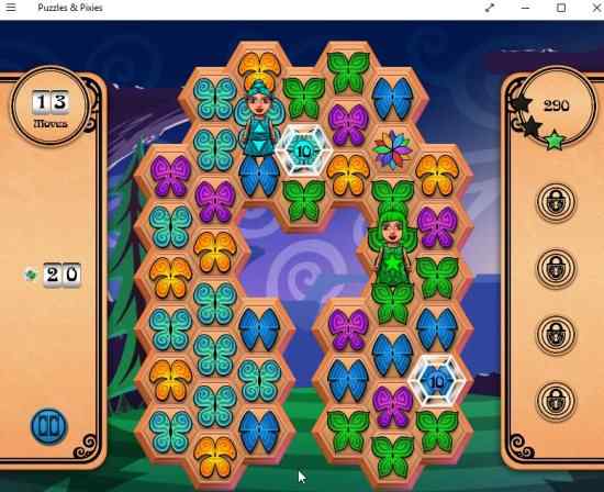 Puzzles & Pixies is a free Windows 10 matching puzzle game app. In this game app you have to match same colored butterflies to eliminate them from the board. The longer the matching chain, the bigger you score will be and you will also get a powerful pixie helper to get higher scores.