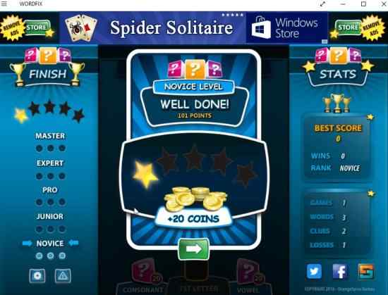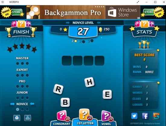 Wordfix Word Game is a free Windows 10 word game app which is quite fun and challenging. You will be given jumbled up letters and you have to form a word from it. If you are able to form 15 words you will be able to win the game.