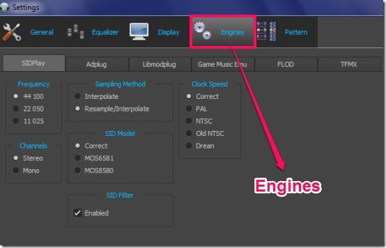 - Engines – In this option you can select the sampling rate, clock, frequency, and select quality from Stereo and Mono options. Further there are more options in engine settings.