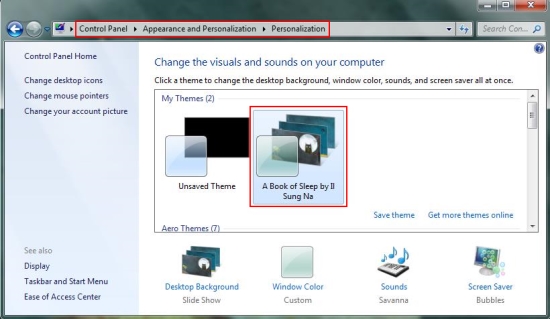 As I have just told, A Book of Sleep will automatically get applied to your desktop once you install it. But in case you change your mind, apply a different theme and then want A Book of Sleep theme back on your screen, you can always find it in the Control Panel. Let’s see how you can access it.