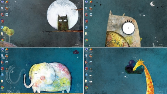 A Book of Sleep, written by Il Sung Na, is a lovely picture book describing that night is a peaceful experience and there’s nothing to fear about the dark. All the characters in the book are asleep, except for the owl, who silently watches how the others sleep on land or in sea. These sleeping characters have been captured in this free Windows desktop theme, including the dozing giraffe, elephant, penguins, and the big-eyed owl, and presented as a combination of background pictures that changes automatically with time once you apply the theme on your desktop.