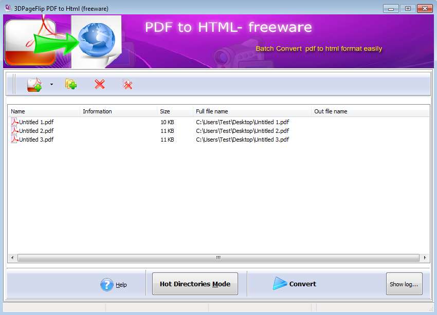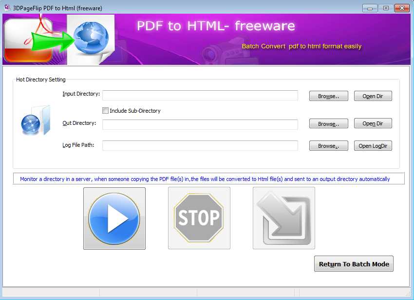 With Hot directories you can automate PDF to HTML conversion, by marking a directory which will be monitored by the program and every time you or someone else saves a PDF file to that directory, which is being monitored, the program will automatically convert it to HTML.