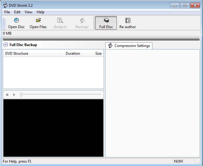 Image above is the default interface that waits for you after you start DVD Shrink. This free DVD backup software is very small and it doesn’t require a lot of system resources to run, so it can be easily used on older computers as well. Note that for a smooth and quick backup, you should probably use a newer PC configuration, with more CPU power.