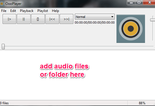 You can grab its setup file using the link placed at the end of this review. OooPlayer is very lightweight (3.38 MB) and it consumes less memory (around 20 MB) than VLC media player and Windows Media Player. After installation, you can open its interface to add audio files.