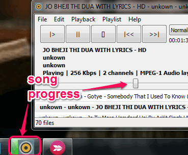 - Taskbar icon of this player also shows progress of playing song. Icon starts filling with green color.