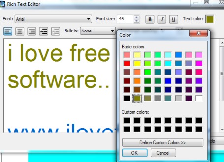 - Provides a rich text editor to select font style, font size, set text alignment, bold, underline the text, and change font color.