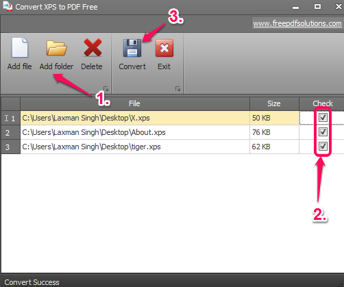Step 3: Now select those files using the checkboxes available for every single file. After this, tap on the Convert button. It will take just a few seconds to generate the output (PDF) files. Still, it can be a bit time-consuming if you are converting dozens of XPS documents.