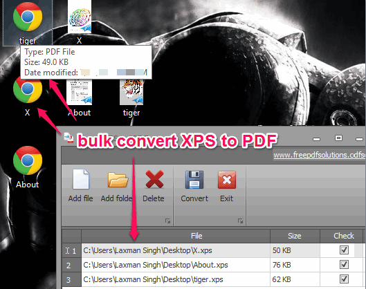 The screenshot above shows multiple XPS files converted to PDF files by me using this software.
