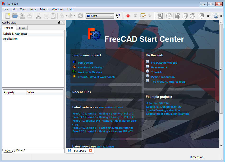 Work area of FreeCAD is located on the right side of the application window, and important toolboxes can be seen in the left sidebar which can be seen on the image above. By default, after a very easy and uneventful installation, upon opening up the FreeCAD for the first time you should see the Start Center where you are gonna be greeted with resources, how to’s and also a start new project selection window. It’s very useful if you don’t have a lot of experience with CAD software. Everyone who’s used similar type of applications shouldn’t have any problems adapting to FreeCAD in a very short period of time. Useful features found in FreeCAD would be: