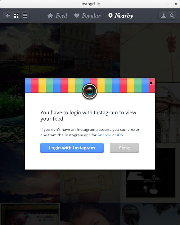 What you see above is the Nearby photo browsing on Instagram using Instagrille while being in the Windows XP operating system. All the newer versions of Windows are also supported, and you can even login to your Instagram account to see which pictures your friends have shared with you. The Nearby button, and the Popular button which is located right next to it are available even for those who do not have an Instagram account.