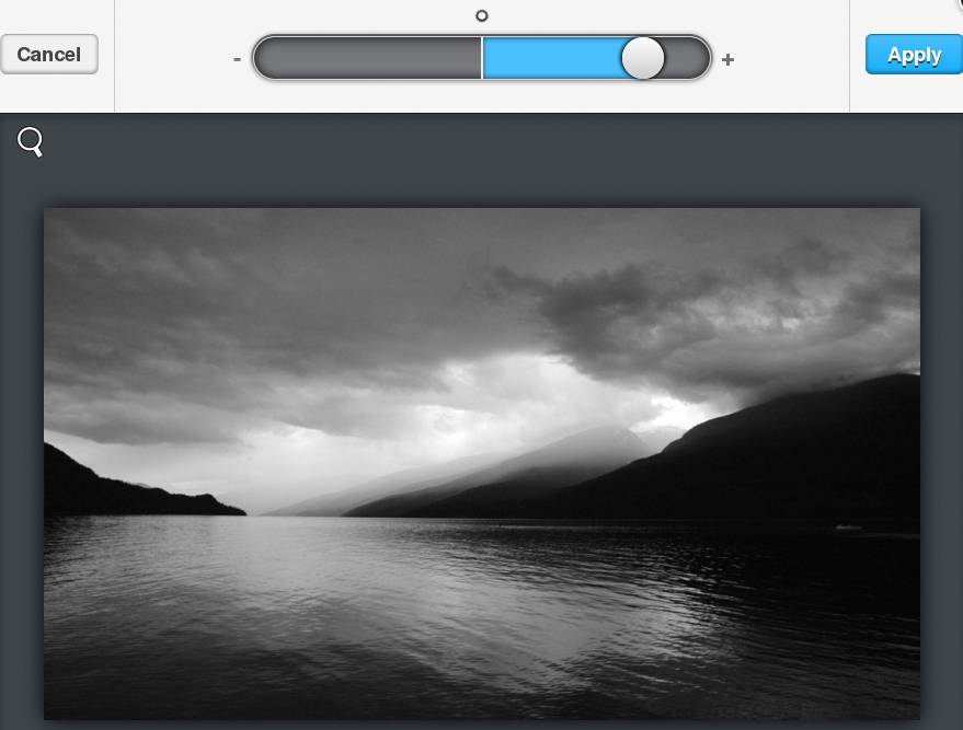 To adjust the image brightness, click on that tool and use the slider to get it just right. When you’re done, click Apply and you’ll be brought back to the main menu.