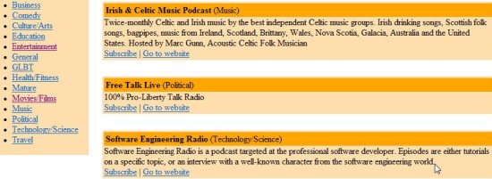 • After you find a good website which hosts podcasts, Click on the Subscribe to the podcast at this page button to add the webpage to your subscriptions list.
