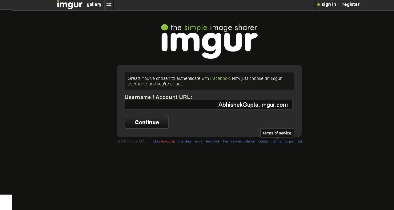 Registering at MyImgur: