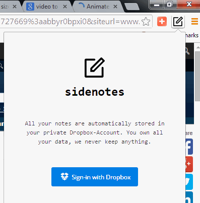 Sidenotes help to automatically save notes and sync all your notes directly with your Dropbox account. This feature has made it more valuable note taking extension. Your notes are secured only on your account. Thus, to use this extension, you only need to sign in with your Dropbox account.
