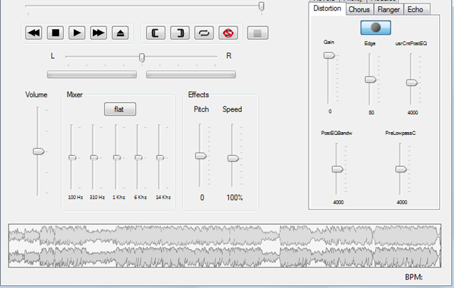The controls of the software are available on the main interface. You will find them at the centre and settings can be found on the right panel. You can use the sliders to change the intensity and make different effects. The interface is pretty simple to use and has a simple look. You need to play around a little to understand the effect of all the buttons. At the lower end you can see the BPM rate of the song, the playback controls allow you to play multiple songs in your playlist just like your media player.