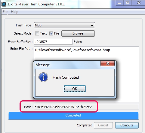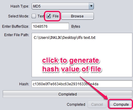 After this, click on Compute button and it will show you hash value shortly. In the same way, you can get hash value of another file and can manually compare the hashes.