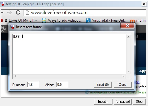 While writing a text frame, you also have the option to set time duration of text frame. Insert any text and hit Insert button and then resume the recording. Once you have completed recording, stop it and it will be saved automatically at the selected output location.