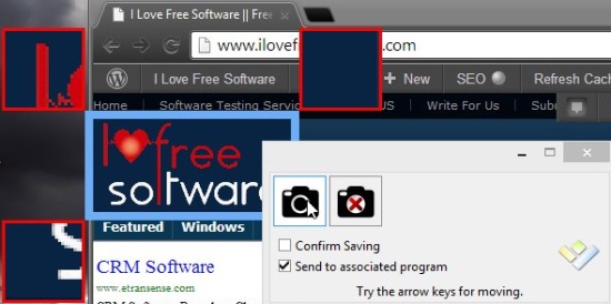 The Window Capture is quite interesting. It not only lets you capture the current window, but also allows you to choose a specific (rectangular) part of the window, in case you don’t want to capture the whole window. Simply take the mouse pointer over that area of the window, and Hornil will display a selection for you to capture.
