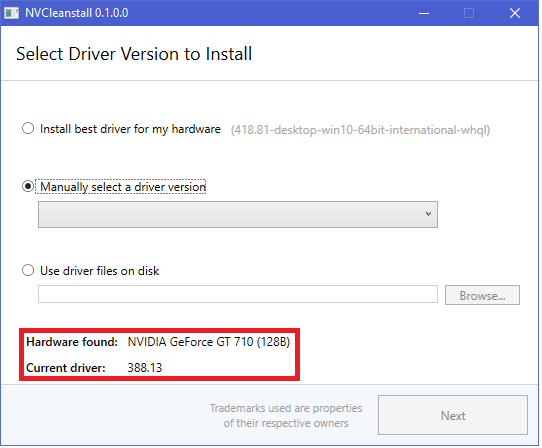 Go to this link to download NVCleanstall on your PC. After that, run the application and its interface will open up. Also, if your PC has Nvidia hardware, it will detect it automatically.