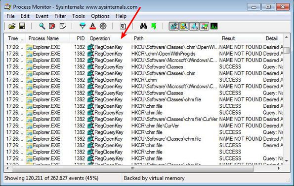 The most important info that you can get is contained in the Operation column, the one that you can see from the screenshot above. This is where you can see what exactly was done to the system by the process listed on the left. All the other columns also have very valuable info. By going over to the right you can find out the location of the registry entry that’s affected, result of the operation (if it was successful or not), and so on.