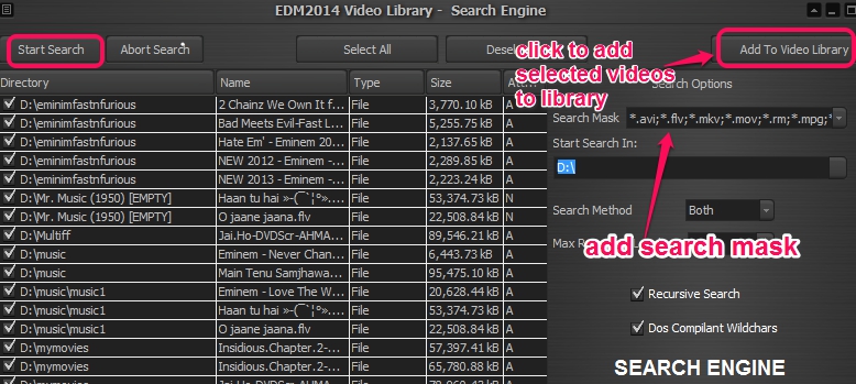 EDM 2014 Video Library is helpful software to easily organize all your videos and movies. Process is quite similar, like creating a playlist, so you won’t find any difficulty.
