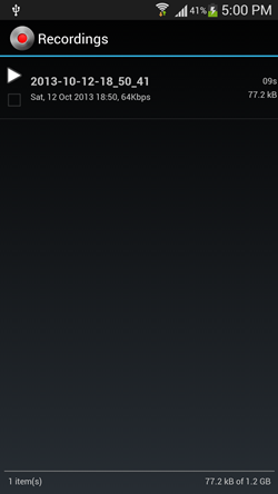 Clicking on Recordings will simply pull up your recordings, and clicking on a recording will play it back. You can long press a recording to show the options which allow for deleting it.