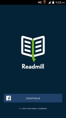You can get the Play Store link of Readmill for Android at the end of the post. Install it like any other Android app. Just launch Readmill and the app will provide you the option to sign up using your Facebook account or your email address. Sign in using the preferred option. This is required so the app can sync across various devices.