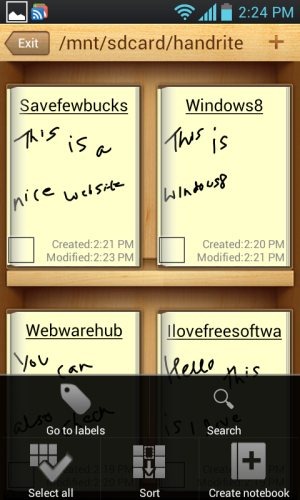 The app is designed with a book shelf type interface in which you can save and keep note file. The note files look as if you have really kept all your notes in a book shelf. Drag the book shelf up or down to manage all your note files which you have saved. On top of it, all the notes are saved in the SD card. You can easily browse the notes directly from your SD card itself.