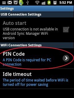 Step 12: Enter the PIN Code and IP address in your PC in the Android Sync Manager app and then click on “OK”.