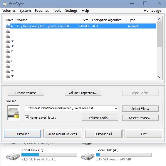 For starters here the virtual partition is going to be saved to an encrypted file on your hard drive, instead of just a folder that anyone can access. Setup is a bit more complicated, but a wizard exists that guides you through everything and will help explain every step of the setup. Created virtual partitions are mounted (made visible under My Computer) through the VeraCrypt control panel.