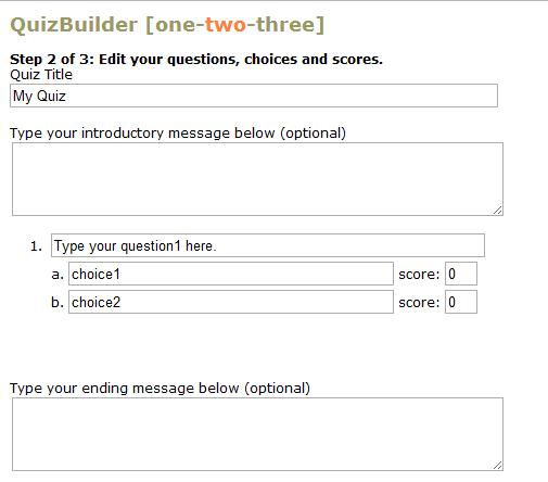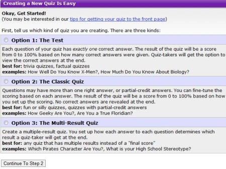 The second website to make quiz online is QuizBuilder. The website has a very simple to understand three-step procedure to create your own quiz. You have to begin by adding simple details like number of questions in a quiz, number of options per question. Such details have to be filled before you move on and enter all the questions. The quiz that you create on this website can be posted on your blog or website. You just have to provide the details of your blog and the quiz will appear on it.