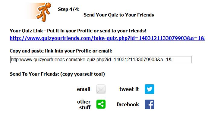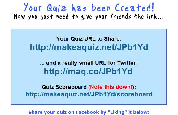 Another website to make quiz online is Quiz Your Friends. It is a nice and easy platform if you want to create a casual quiz for fun purpose. The quiz that you create can be emailed to your friends, posted on Twitter or Facebook, etc. The website provides you with a link of your quiz that you can share among your friends. Creating a quiz is also fairly easy as you just have to fill in quotidian details. The only disadvantage of using this website is that you cannot add any images or media files in your quiz.