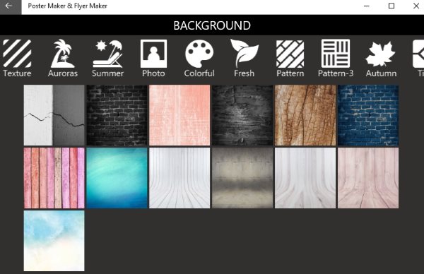Poster Maker & Flyer Maker is a free app to create posters. The app is absolutely free including the background designs and textures. As it is free you might see some ads pop up every now and then. But they don’t bother you too much. When you start the app you will see a screen like the one seen in the screenshot above. Click on the start button to start with the designing. First of all you will be asked to choose a background for the poster. This can be seen in the screenshot below.
