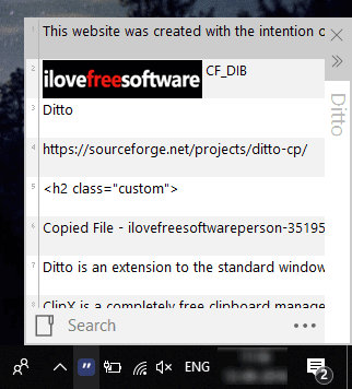 Ditto is a popular open source clipboard manager software. Though its description mentions that it is an extension for Windows clipboard, it is actually a fully featured open source clipboard manager software. It lets you store thousands of text, image, and other clipboard entries and you can use any of them later. You can also adjust the size of its clipboard box and edit any text entry with its built-in editor. It has some amazing features that I like a lot. Some of the features that catch the attention include: