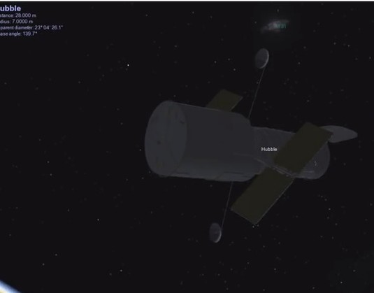 Long list of supported objects on the night sky that I already mentioned in Celestia also includes man made objects, like the Hubble telescope. Constellation shapes can be turned on, and there’s a search tool that can help you find planets, galaxies, nebulae and more.