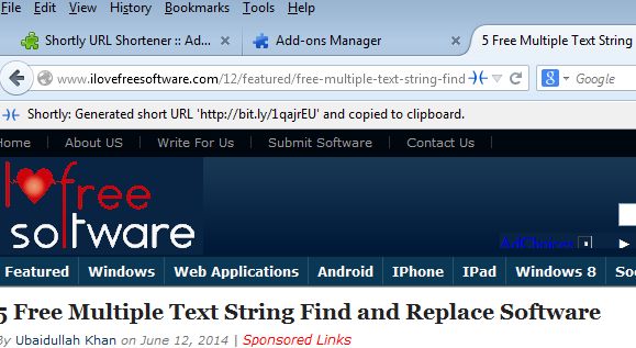 Addon icons can also be found at the bottom toolbar, and alternatively you can use keyboard shortcuts to shorten the URL and copy it to the clipboard automatically. If you’re not fond of keyboard shortcuts, just click on the icon and the URL is automatically shortened and copied to the clipboard.