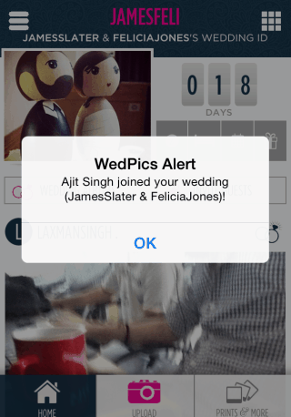 The first step towards using this iPhone app is to get registered with the app. You can get registered using either Facebook or manually filling the registration form. After this, you have to enter wedding couple name and wedding date. On next page, you will receive a Wedding ID which is like a password for guests to join your wedding via app. You can also add a photo of couple and wedding bio.