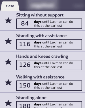 Step 7: When you’re done with playing around and entering baby details, the app starts tracking automatically. On the dashboard, tap the milestones achieved bar to see different milestones and after how many days your child will be able to perform them.