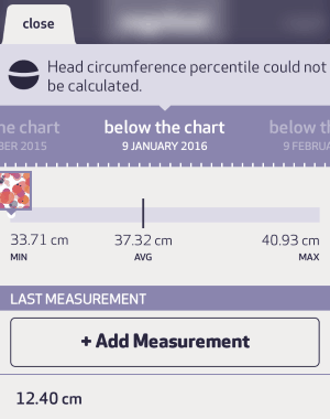 Step 6: For better tracking, you must maintain the measurement regularly. Tap the “Measurement” option to enter weight, head circumference, length, and the date of the entry. It also lets you change unit system either as metric or imperial from the settings.