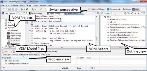 Overture provides a bunch of open source Eclipse plugins and supports the development of precise models for software development in any of the above mentioned VDM dialects. Plus, its ability to reuse components and extend features allow users and researchers to experiment with the tool for abstract modelling and analysis of their projects.