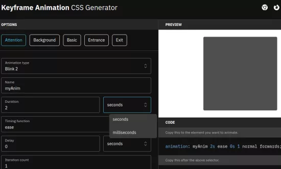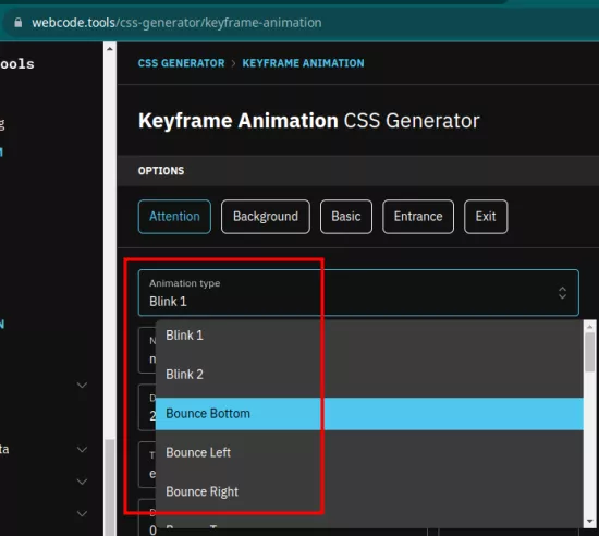 Webcode.tools website provides a free key frame animation CSS generator. Using this website, you can quickly generate CSS code for key frame animation for any HTML components. It gives you a visual tool where you can enter the animation parameters and then in the end you will get the final CSS code that you can copy and use anywhere you like. The best part is that along with the CSS code, it even shows the review of the animation.