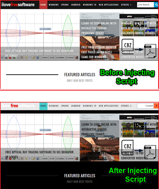 Step 4: Click on the Save button and then the changes will appear on it. You can then share the URL of the modified website using the Share option. You can see the below screenshot in which I have tried to invert the page color of the target website using JavaScript.
