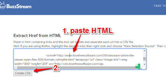 Step 3: Paste the HTML in the box available on the homepage of Extract Links from HTML tool.