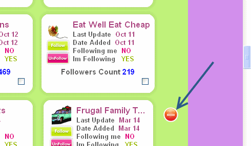 This tab shows you the Twitter users who you are following, as well as who are following you back. Each Twitter follower is displayed in the same rectangle form with same information as mentioned above. You can choose to unfollow one, or all together.