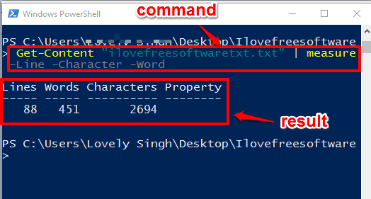 Execute the command and result will be in front of you, like you can see in the above screenshot. So, you can see how easy it is to find the number of words, characters, and lines in a file using PowerShell.